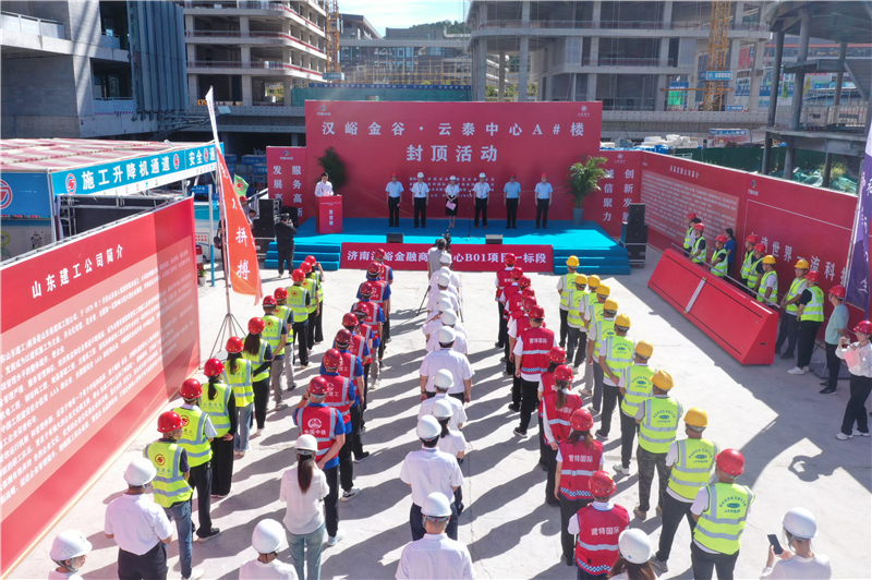 8月23日上午9時(shí),集團(tuán)承建的漢峪金谷·云泰中心A#樓喜封金頂。濟(jì)南高新智慧谷投資置業(yè)有限公司董事長兼總經(jīng)理常艷麗;濟(jì)南高新智慧谷投資置業(yè)有限公司副總經(jīng)理、濟(jì)南東禾置業(yè)有限公司總經(jīng)理駱虎;濟(jì)南高新智慧谷投資置業(yè)有限公司投拓總監(jiān)費(fèi)世俊;營特國際工程咨詢集團(tuán)有限公司副總經(jīng)理金永滿;山東建工集團(tuán)副董事長師厚紀(jì);山東建工集團(tuán)副總經(jīng)理、安全總監(jiān)蘇世凱等領(lǐng)導(dǎo)出席儀式,與項(xiàng)目建設(shè)者一同見證這激動(dòng)人心的時(shí)刻。