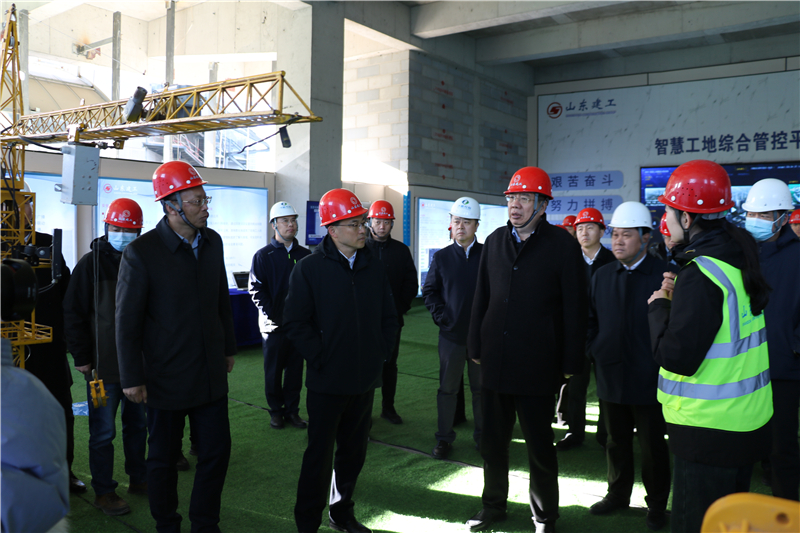 濟南漢峪金融商務(wù)中心B01項目進行積極踐行智慧建造理念,深入推廣BIM+智慧工地,在人員管理、視頻監(jiān)控、危大工程監(jiān)管、物料管理、綠色施工等方面探索數(shù)字化轉(zhuǎn)型,創(chuàng)新安全、質(zhì)量、科技管理,積極爭創(chuàng)山東省三星智慧工地典型案例。11月28日,山東省住建廳王玉志廳長帶隊調(diào)研了本項目,濟南市委常委、副市長任慶虎等領(lǐng)導(dǎo)陪同調(diào)研。王玉志廳長對本項目智慧工地建設(shè)給予肯定,并提出了指導(dǎo)意見。