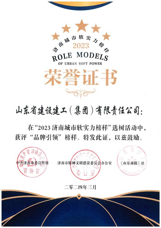 集團獲評2023濟南城市軟實力榜樣之“品牌引領榜樣”