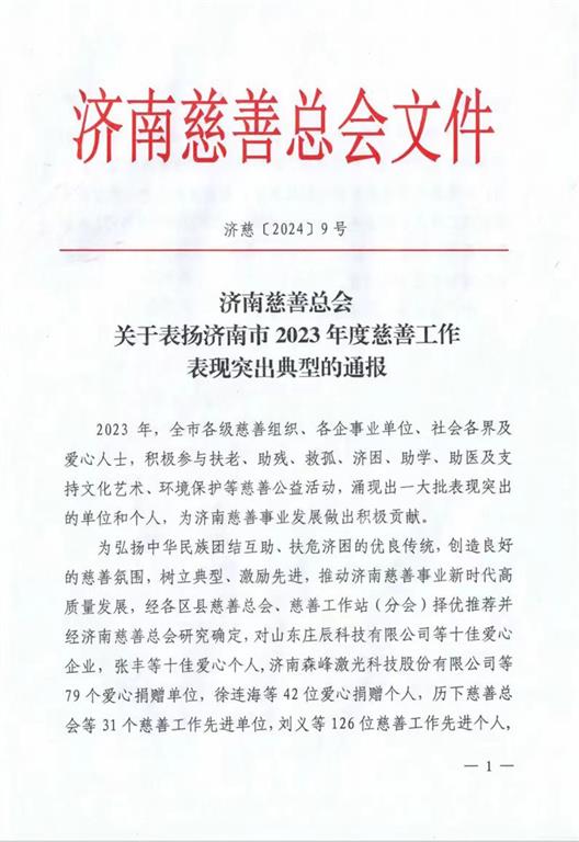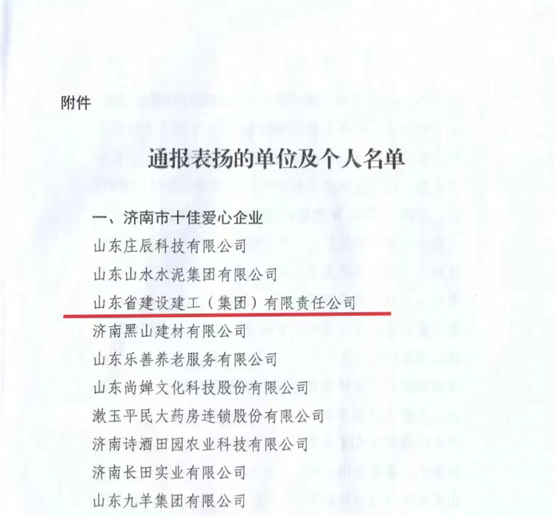 集團(tuán)榮獲“濟(jì)南十佳愛心企業(yè)”榮譽(yù)稱號(hào)