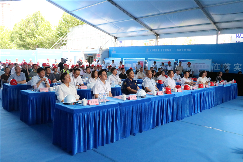 6月6日,“2024年高新區住建系統安全生產月活動啟動儀式”在集團承建的前沿科創基地項目隆重舉行。濟南高新區黨工委委員、管委會副主任李濤,高新區規劃建設部部長嚴雷,高新區應急管理部部長董鳳,高新區消防救援大隊教導員王磊,高新區規劃建設部副部長劉嘯鵬,孫村街道黨工委委員、辦事處副主任孫志霞;集團黨委書記、董事長王彥宏,副總經理、安全總監蘇世凱,工程部總經理李冬冰等出席活動。
