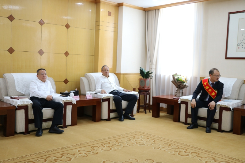 4月30日上午,歷下區委書記楊傳軍會見全國勞動模范肖衡。歷下區委副書記、區總工會主席吳劍;歷下區總工會黨組書記、常務副主席霍濤;集團黨委書記、董事長王彥宏;集團工會主席、黨群部部長欒兆偉陪同會見。