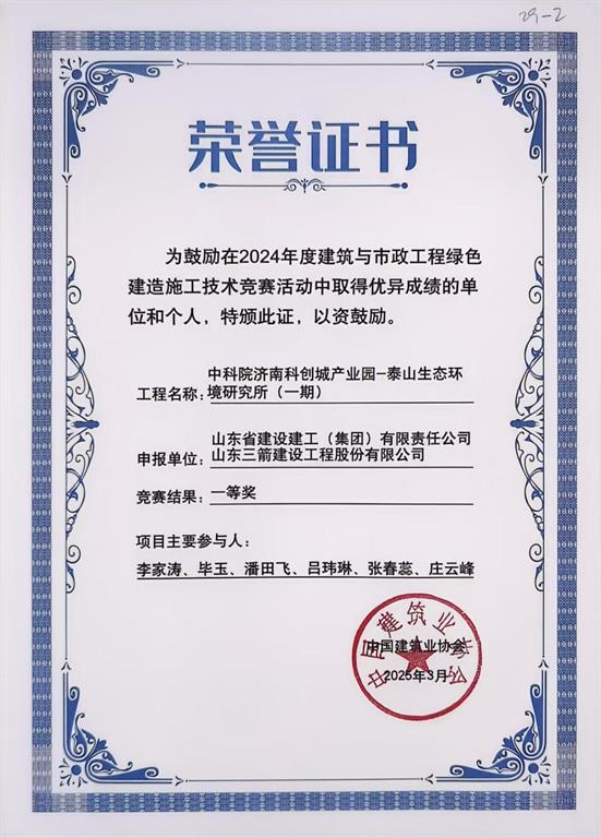 中建協綠色建造施工技術競賽一等獎