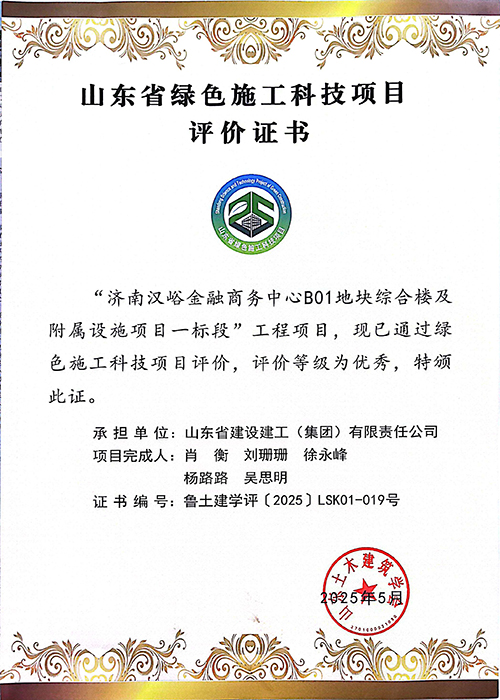 省綠色施工科技項(xiàng)目:濟(jì)南漢峪金融商務(wù)中心B01地塊綜合樓及附屬設(shè)施項(xiàng)目一標(biāo)段